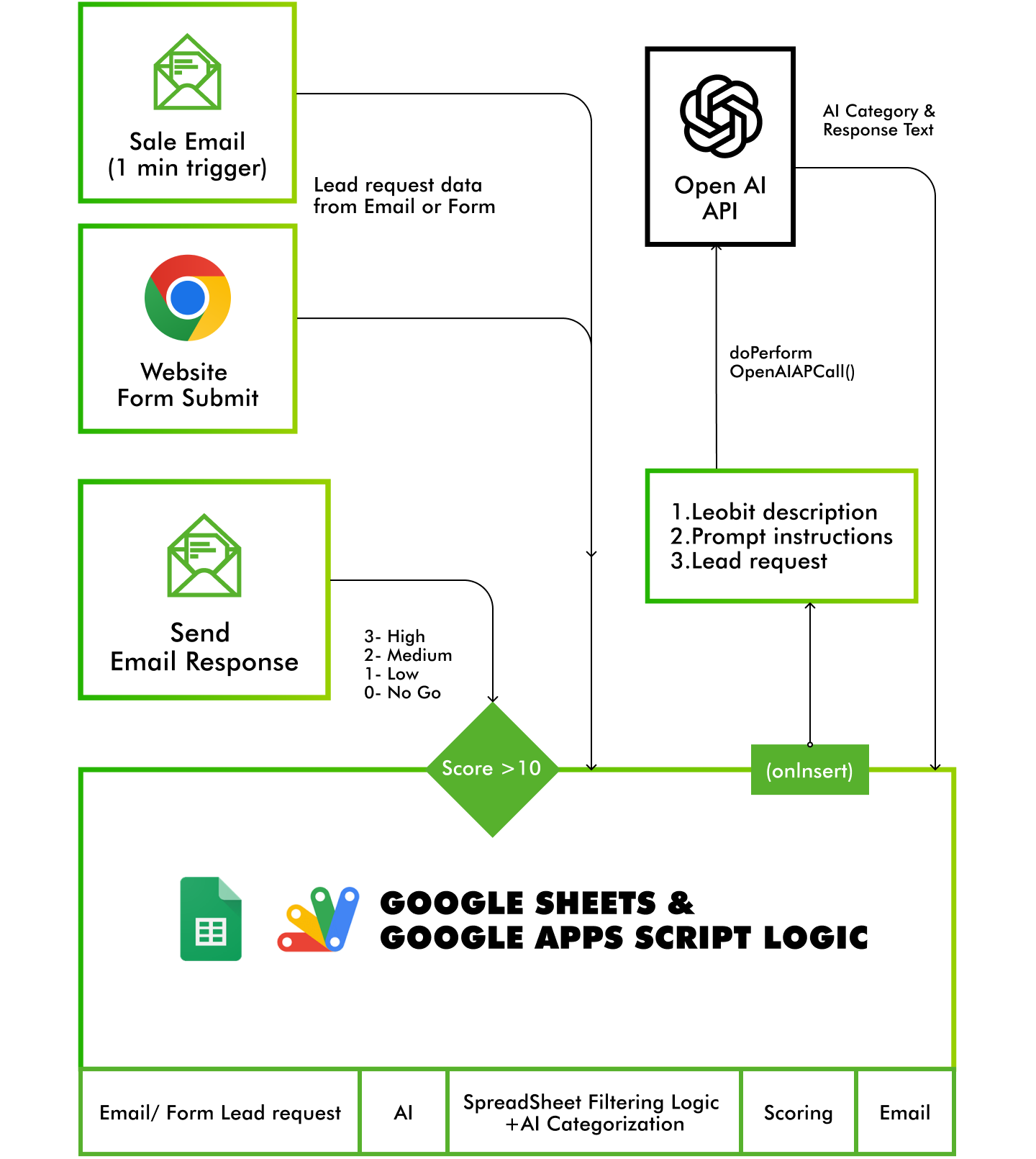 The AI Sales Email Auto-Response Solution, or “Leo — Leobit AI,” automates responding to incoming sales emails and website form submissions using GPT technology.